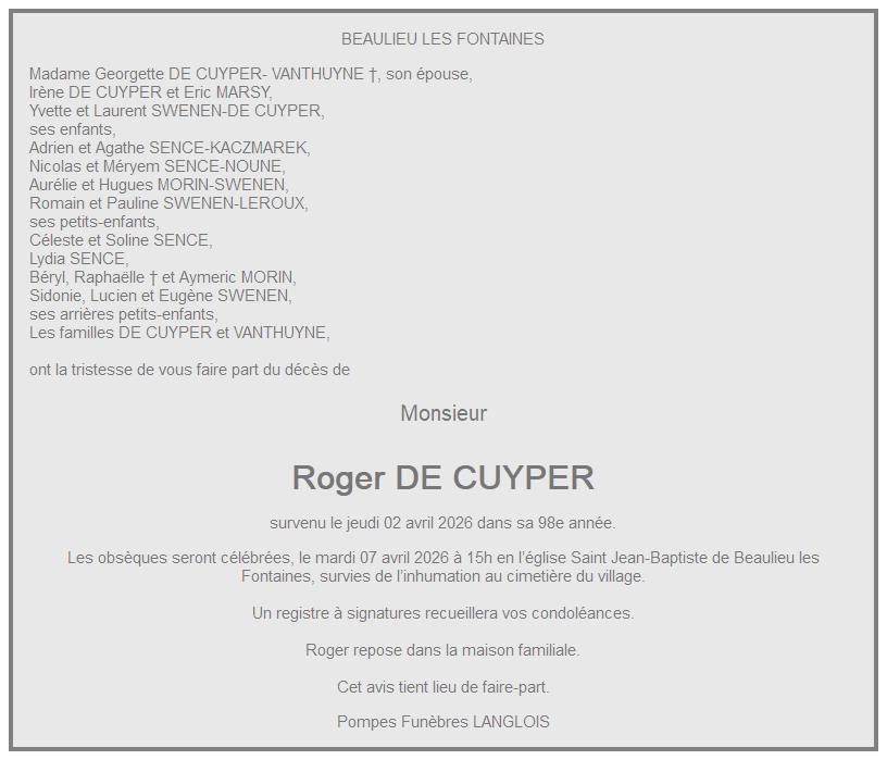 cimetière communal de Beaulieu les Fontaines le mardi 7 avril à 16 heures