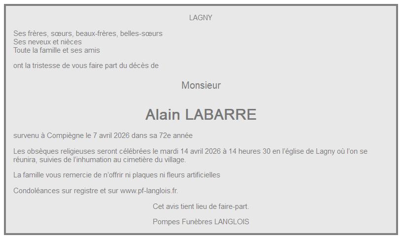 cimetière de Lagny le mardi 14 avril à 14 heures 30